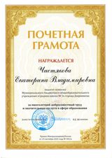 Педагогу-психологу МБУ ППМС-центр Чистяковой Екатерине Владимировне была вручена Почётная грамота Министерства просвещения Российской Федерации.